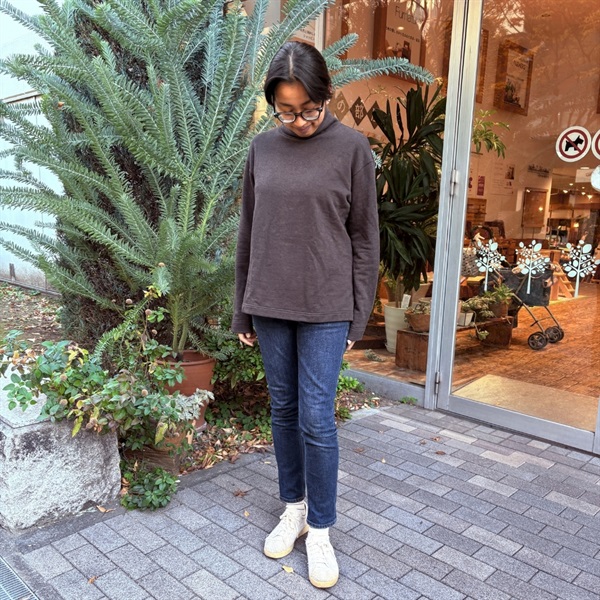 国産の自然栽培綿、オーガニックコットン、ヘンプを混紡したオリジナル糸を使用したハイネックプルオーバーです。
