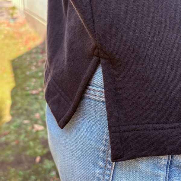 ・裏毛生地の特性上、裏側に細かい糸屑がついている場合があります。着用前に裏返してお洗濯をおすすめします。