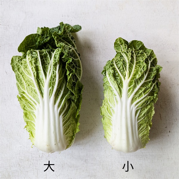 小ぶりながら、葉がぎゅっと巻かれ、ずっしりと密度が詰まった白菜です。加熱調理すると、やさしい甘みと、口の中にジュワッと広がるジューシーさが際立ちます。蒸し焼きにすると甘みが引き出され、とろける食感に。鍋物にもおすすめです。