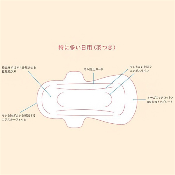 また、トップシートの漂白には、環境負荷の少ない酸素系漂白を使い、不要な化学処理をできる限り排除し、安心して使えるものづくりを追求しています。