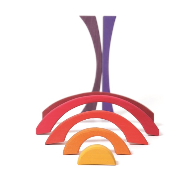 シンプルでミニマルな形、美しい色使い、心地よい手触りは年齢を問わず親しまれ、繰り返し遊ぶ中でこどもの想像力を育てます。自由に組み合わせられるデザインだからこそ、遊び方を限定せず、創造性をのびのびと引き出してくれるおもちゃです。