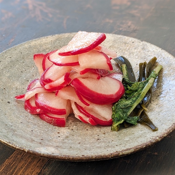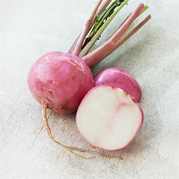 ほのかな甘みとくせがない味わいです。果肉は緻密で滑らか。サラダ・お漬物・ピクルスにおすすめです。鮮やかな紅色の皮が映えて、綺麗に仕上がります。生食の他に、スープや炒め物にもぜひお試しください。