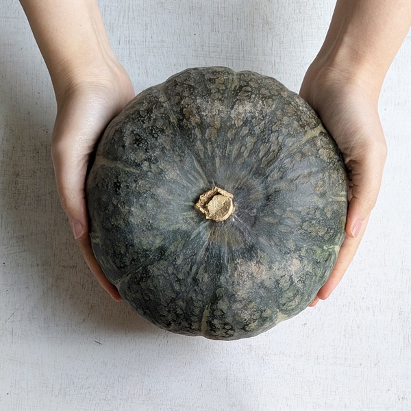 ほろほろという品種は、ホクホクとした食感と甘みが特徴です。火を通すと濃いオレンジ色になり、濃厚な香りと甘みが楽しめます。ソテーにしてシンプルな味付けで仕上げたり、今の寒い季節にはスープもおすすめ。かぼちゃそのものの自然な甘みが感じられ、身体も心も温かくなります。