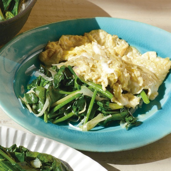 柔らかな葉とほのかな甘みのサンズファームのほうれん草。赤い根元まで美味しくいただけます。さっと茹でておひたしや胡麻和えなどにどうぞ。また、炒め物やスープ、シチューなどに加えるとコクが増します。アクやエグミがないので、下茹でせずそのままお使いいただけます。