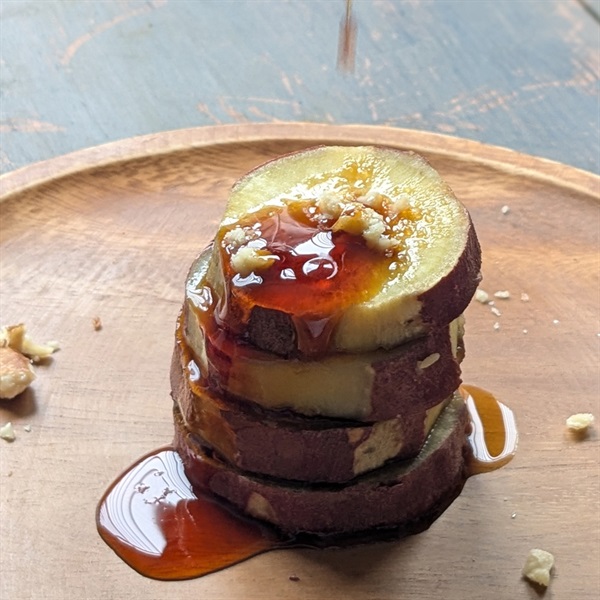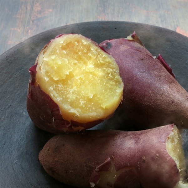 濃厚な甘みと、なめらかでクリーミーな口当たりが特長です。熱を加えるとしっとりした食感になり、焼き芋にしたり蒸すだけでもとても美味しくいただけます。甘さを活かしてケーキやマフィンなどスイーツにお使いいただくのもおすすめです。