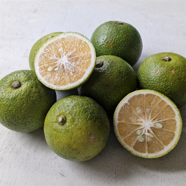 爽やかな香りと酸味が特徴です。フレッシュな香りは、焼き魚や鍋料理にぴったり。果汁をぎゅっと絞れば、さっぱりとした酸味が素材の旨味を引き立てます。刺身や冷奴に垂らせば風味が増し、炭酸水などに加えれば、清涼感のあるドリンクに。皮を薄く削って香りをアクセントにするのもおすすめです。