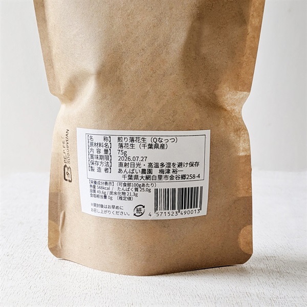 自然栽培で育てた「Qなっつ」という品種の落花生を天日干しでじっくり乾燥させ、素材の旨みを逃さないよう丁寧に煎り上げました。