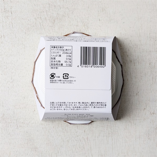 保存料・酸味料など添加物は一切使わずに、お米だけで作られたパックごはんです。