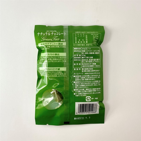 有機ココアバター(オランダ製造)、全粉乳、有機砂糖、有機抹茶 |