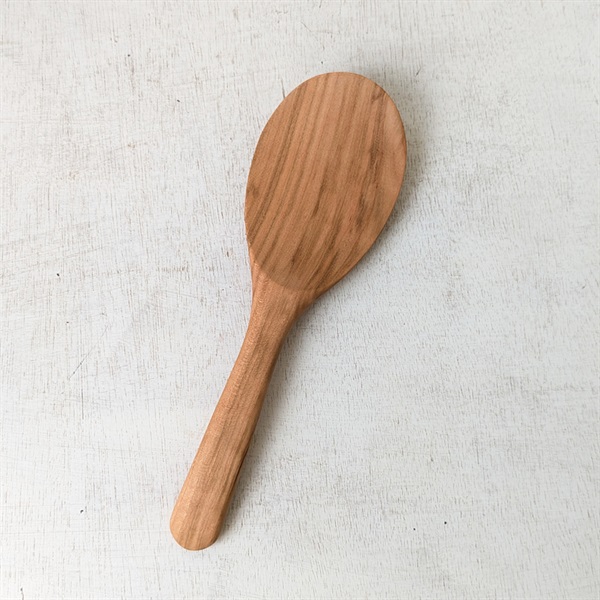 国産の山桜を使用したしゃもじです。ご飯のすくいやすさと心地よく手になじむ形にこだわり、オイルのみで仕上げているため、素材本来の美しさと風合いをしっかりと感じられます。