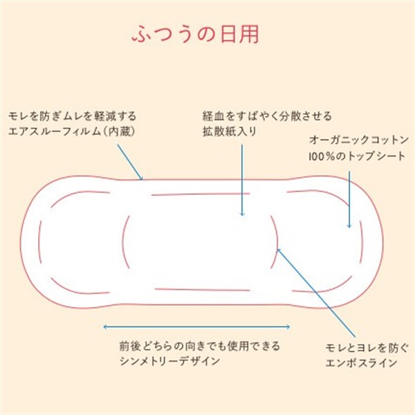 また、トップシートの漂白には、環境負荷の少ない酸素系漂白を使い、不要な化学処理をできる限り排除し、安心して使えるものづくりを追求しています。