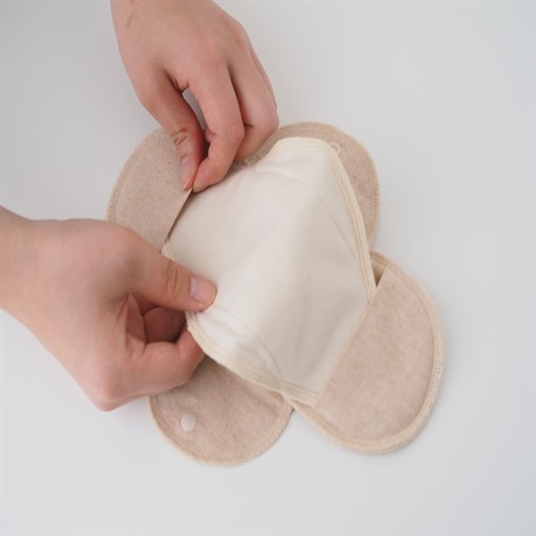 ・洗濯機での脱水後はシワを伸ばして干してください。手で軽く伸ばしながら形をしっかり整えることで形崩れが少なく、乾いたあとの布ナプキンも心地よくご使用いただけます。