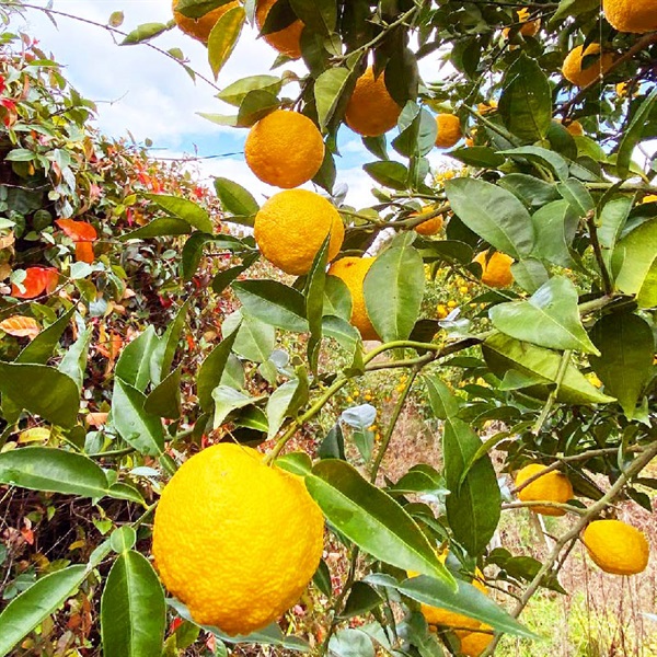 大玉の柚子です。11月下旬から12月初旬に完熟期を迎える本柚子。更に追熟すると果皮が甘い香りを放ち始めます。自家製のポン酢やジャムにどうぞ。